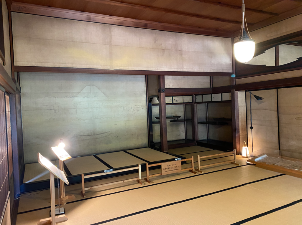 三間四方の9坪の「九間(ここのま)」床の間に富士山が、ど真ん中に描かれています。