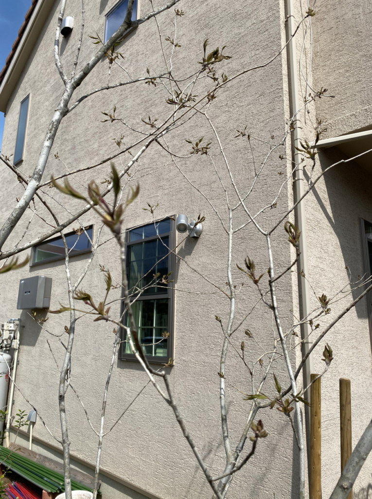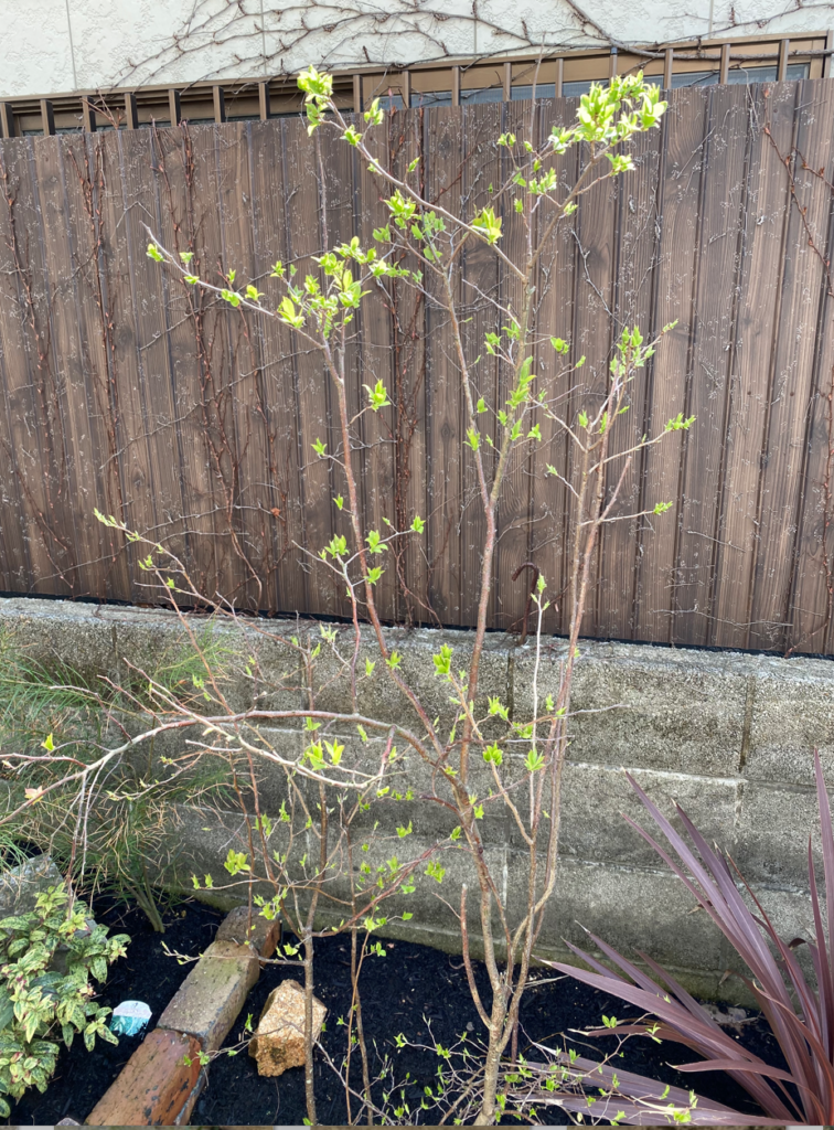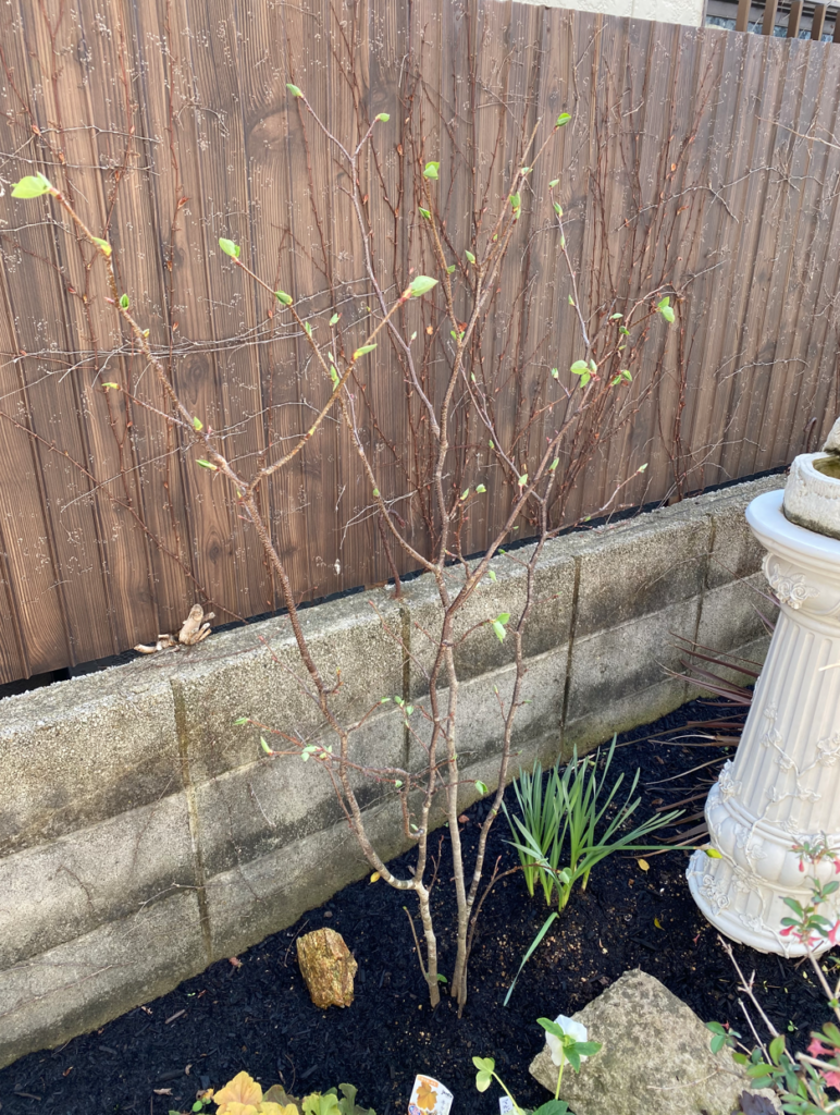 こでまり。ようやく葉っぱが芽吹いてきました。