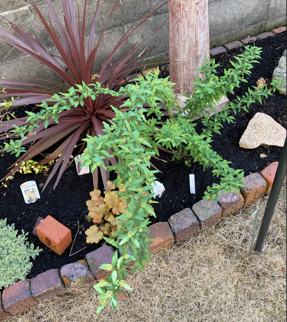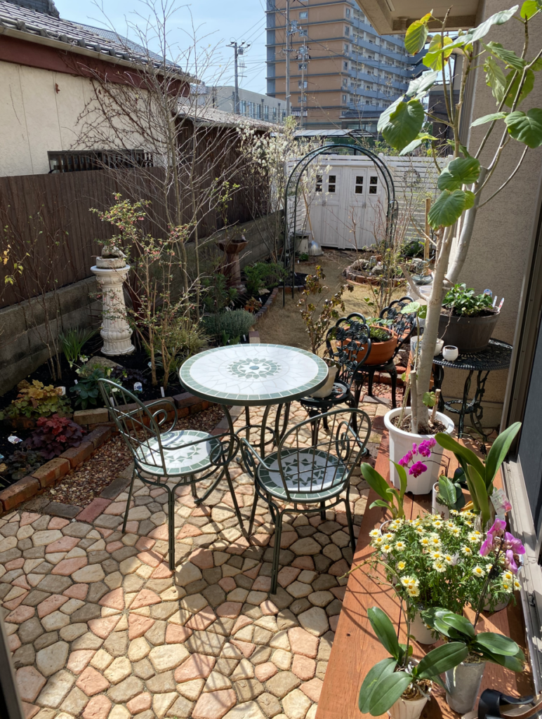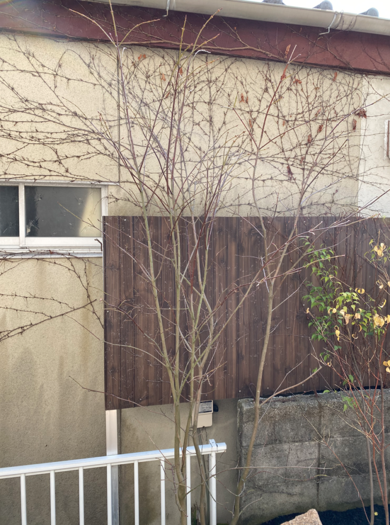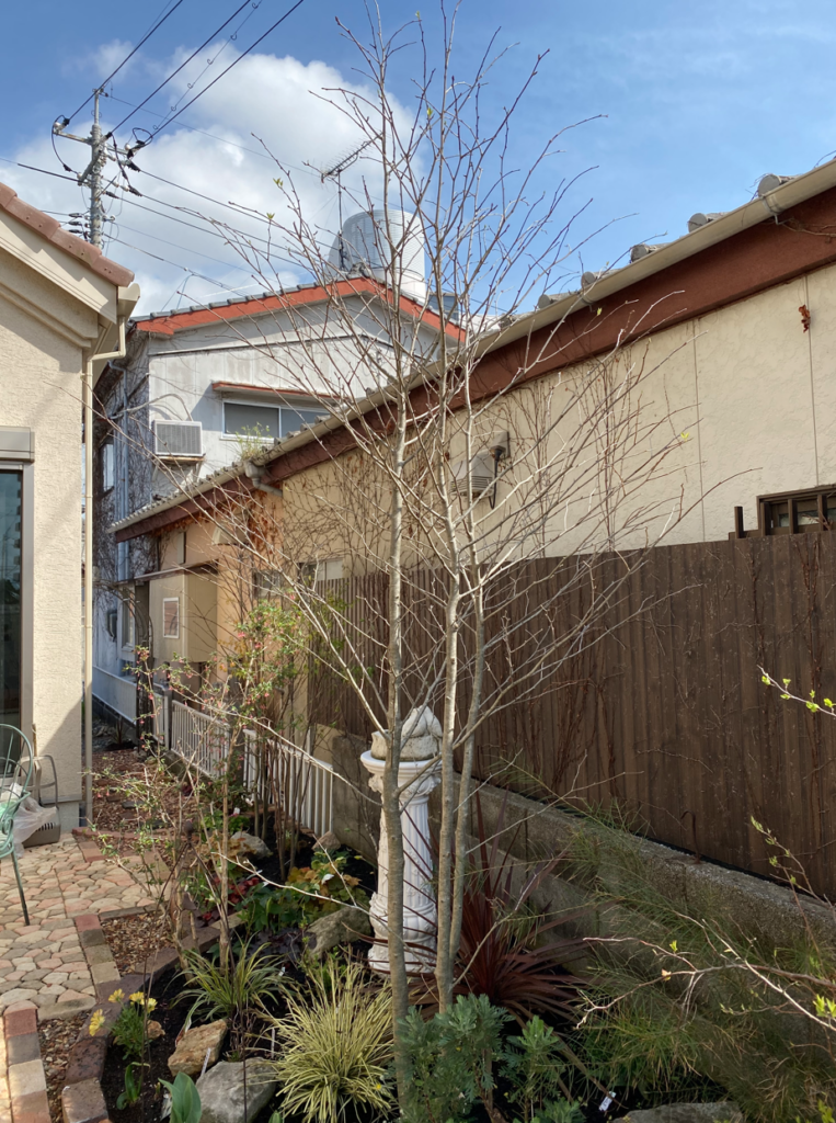 手作りDIYで1年前に作った庭の、現在の様子です。緑が戻ってくるでしょうか。