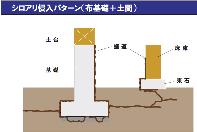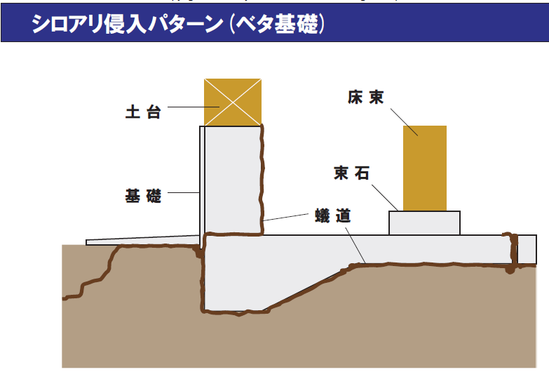 ■べた基礎であっても隙間から入る。