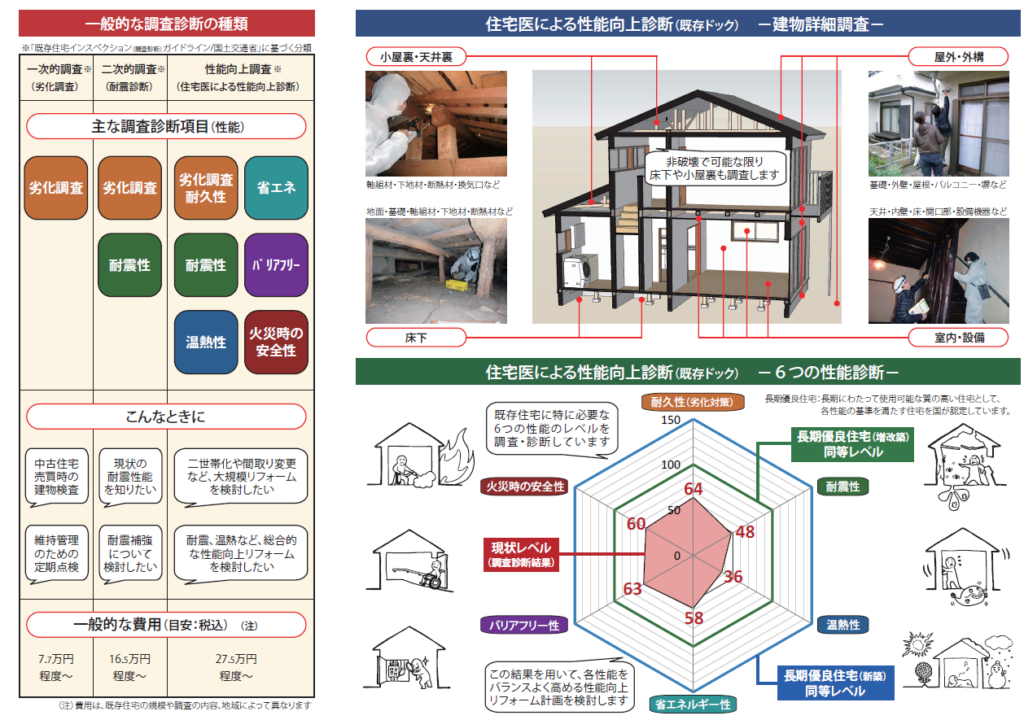 | 性能向上調査(住宅医による診断) | 目的:性能向上リフォーム | 性能向上インスペクション |