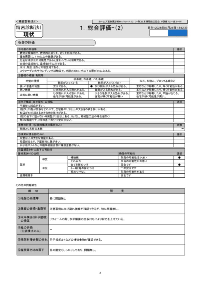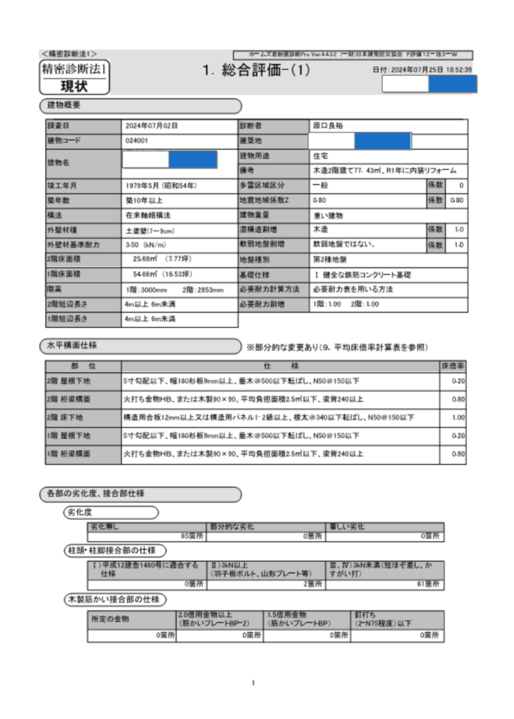 1:耐震診断報告書(現状は評点0.83:倒壊する可能性がある)※計算プログラムは省略