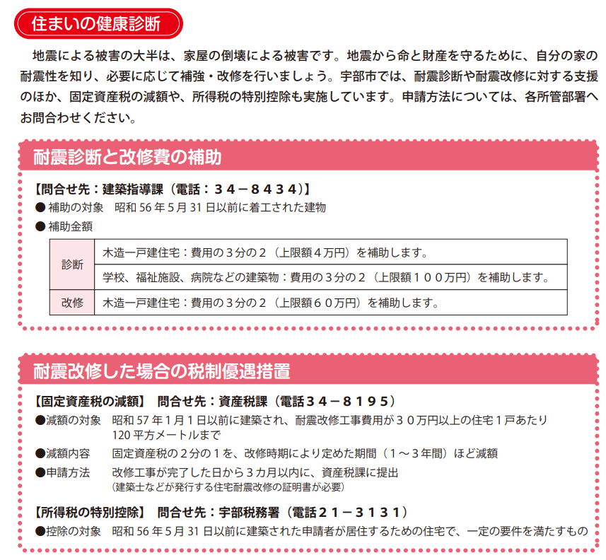 宇部市に耐震診断と耐震改修の補助金制度があります。