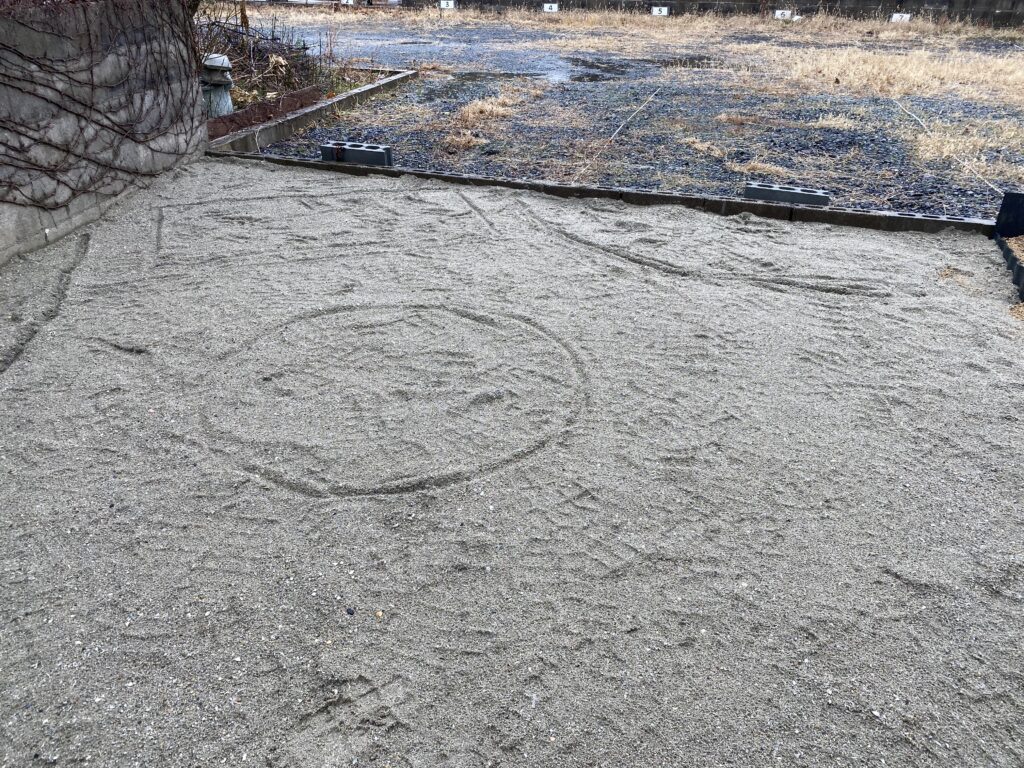 さてと、畑に何を植えようかと考えてたら、この際、庭もつくろうと思い立ち、砂を1.5トン入れ、地面に絵をかいてみた。やってみるか?そういえば、今やってることは、DIYなのかな。出来るかな?職人でもないし。ご近所さんも時々様子をみに来られるし、後には引けない、やってみよう!予算は50万。今度は、YouTubeで植栽の勉強をする。どんな樹木を植えたらよいか?あらゆるYouTubeを手当たり次第見尽くす勢い。そこで、直感的に!里山みたいな自然なナチュラルガーデンにしたい。鳥たちが遊びにくるような雑木の庭。。植えたい樹木は、「アオダモ」「アオハダ」「ジューンベリー」「ナツハゼ」「ツリバナ」「ハイノキ」そして、薔薇かキウイのアーチがほしい。冬場の鳥の餌がない時期に、ナッツを砕いて置ける場所もつくろう。そうして、つくりたい庭を絵にしてみたんだ。まず、スタートとして芝の庭にしたかった、里山には土が似合うとは思うけど、笑。結局、先々、つくり直せるように、モルタルは使わないでつくることと、レンガをメインにアンティークな感じにしよう。そこで、ベルギーレンガを探すけど良い物は高価すぎるし手に入れにくい。庶民らしく、ホームセンターにあるものでつくろう。そして、ホームセンター巡りをして候補を見つける。段差があるところは荷重がかかるので、レンガでは厳しい、やむを得ずブロックにしよう、でも極力隠そう。芝は高麗芝よりも、TM9というトヨタが開発して鳥取で生産しているものが、絨毯みたいに緻密で成長が遅く管理しやすいようだ。等、あれこれ調べながら考える。結構、楽しかったし勉強にもなったよ。続く…