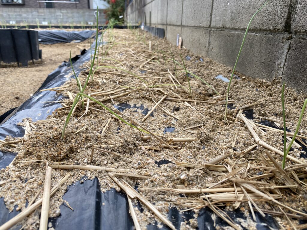 タマネギ初挑戦。植え付けが11/23で、少し遅いのですが、晩生タマネギを植えました。たいへん細くて華奢でこんなんで枯れずに冬を越せるのか、疑問ですが、晩生は寒さに強いというので大丈夫なのかな。収穫は5月予定。気長に見守っていきたいと思います。