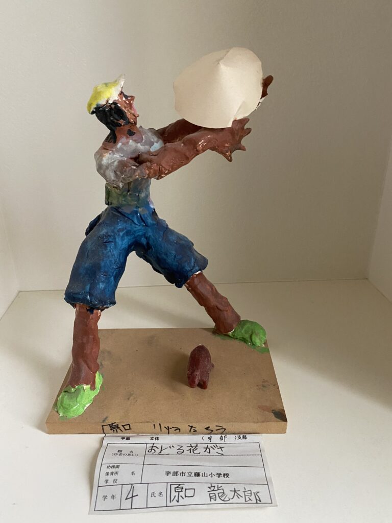 作品名「はじまりのはじまり」動植物に共通する「奇跡の誕生」を現したもの。やがて様々な植物が寄り集まり成熟していく。大地に飛来した草花の種子は、根を張り子孫を残す。それは、単なる偶然ではなく、時間、気候、風向き等、全ての条件が整った結果である。われわれ人間も世界中で自然発生的に生まれ、暮らしているように見えるが、その時その場所での必然である。今は、はじまりのはじまり。そんな作品。2020.11.17
