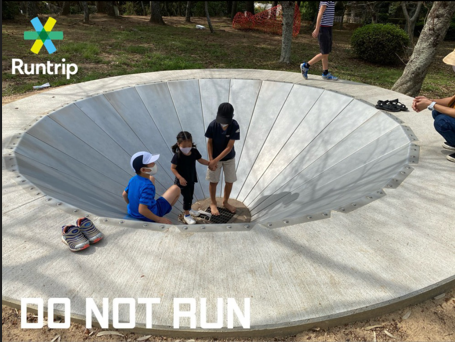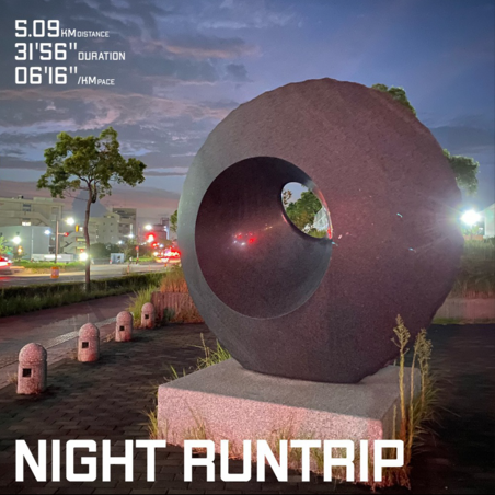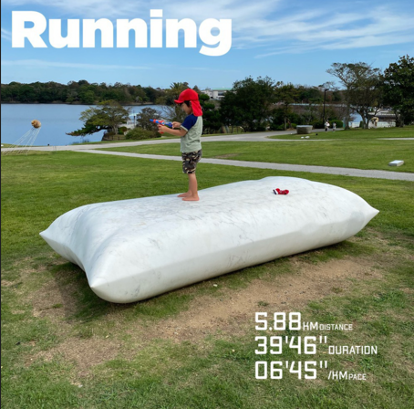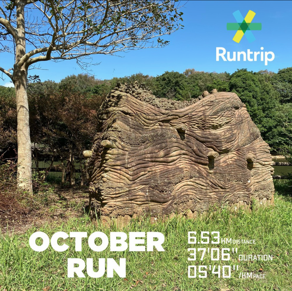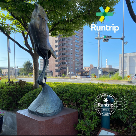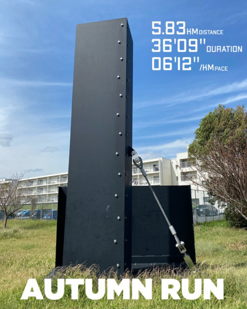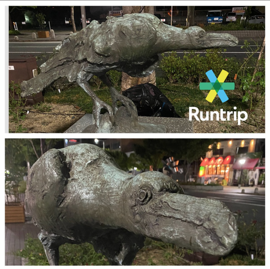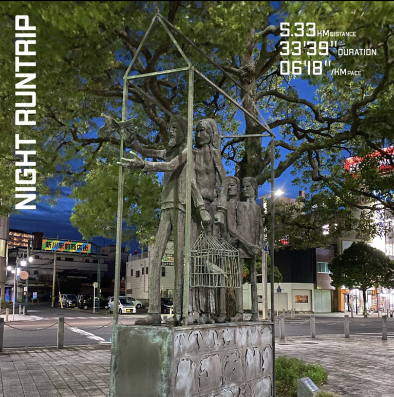作品名「縛られたピラミッド」歩道に突然 隕石が!ぶつかるところでした。笑い。Runtripを偶然見つけて、走ることのモチベーションが上がりました。これまで一人で土日に走るくらいでしたが、皆で一緒に走っている気分になれます。2020.8.26