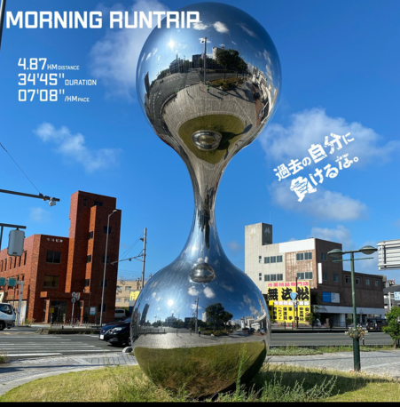 作品名「SEED 増殖」今朝は昨晩の食べ過ぎか、体がだるくて、走る気分ではなかったが、朝日を浴びるジャーナルをみたら、着かえていた。さあ!でも、キツかった。球体の中に私がいる。街の活性化や増殖のついでに、私の筋肉も増殖してください。どのモニュメントも賞をとったものばかり、いつもの風景の中で、今日、はじめて気が付きました。改めて凄い!2020.8.29