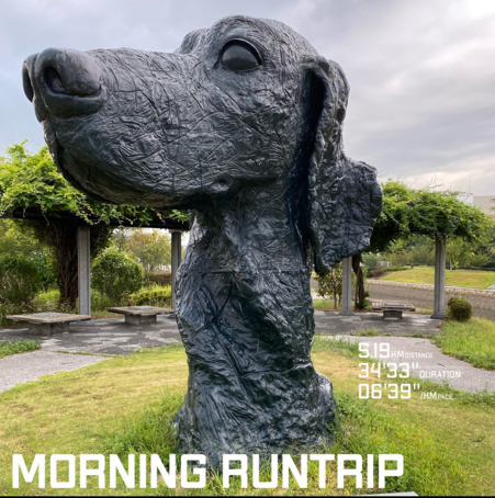 作品名「大首Ⅲ」ビークル犬かな?何度もみたけど、🐕犬首ではなかった。雨がぱらつく中、朝ランしました。ここは、私の5kmのランニングコースです。すれ違う人との朝の挨拶が爽やかです。2020.9.4