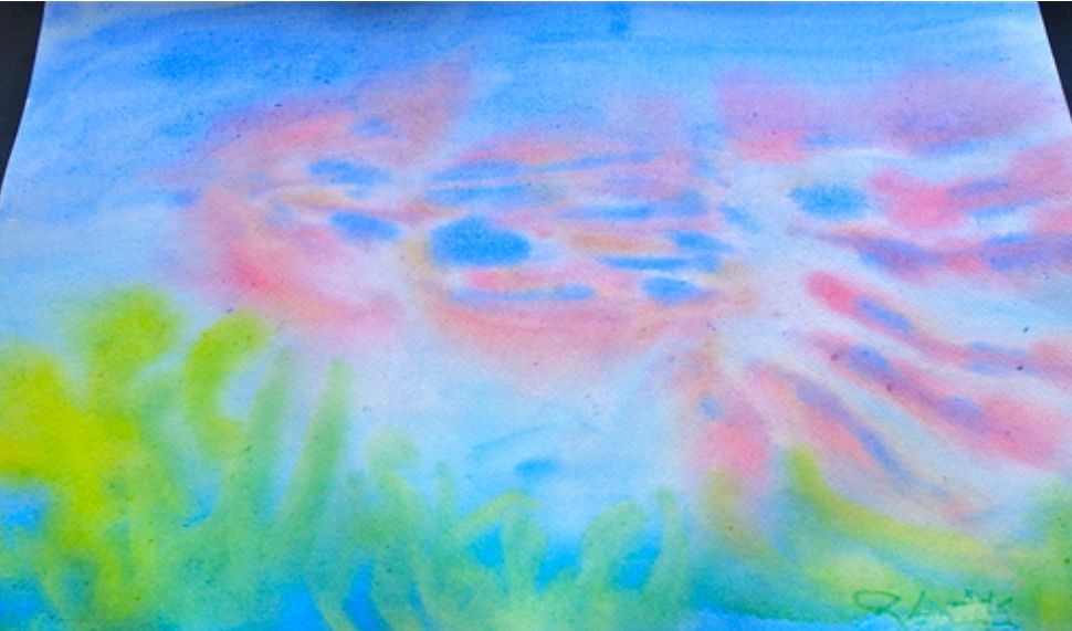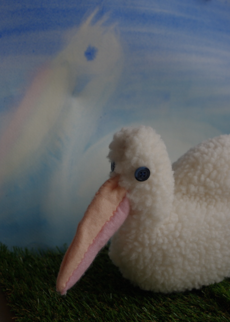 教室でペリカンについて調べて、にじみ絵を描いたんだって・・・