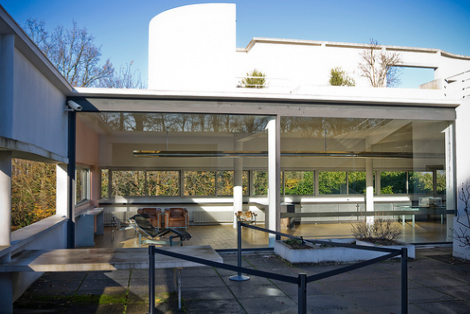 僕は、大学生になりたての頃、この建物を見て感動したのを今でも覚えています。サヴォア邸は、実現された近代建築5原則(ピロティ 屋上庭園 自由な平面 水平連続窓 自由な立面)の建物として、紹介されていました。最大の特徴は、水平な床、構造体としての垂直な支柱、そしてファサードを意識した壁、という建築における3つの基本要素を明確に表現している点であると。近代建築家ル・コルビジェによってフランス、パリ郊外のポワシーに建てられたものです。「サヴォア邸」は、建築された年がなんと1931年、日本では昭和6年、今から91年前のことです。当時、世界中の建築家が、この先見の明を示した建築物を見て、相当な驚きと賞賛を持って迎えたというのもよく理解できます。世界遺産として登録されています。