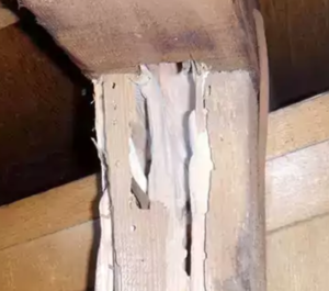 こんな虫食いの柱を神社などでよく見かけませんか?