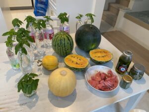 バジル🍃とスイカ🍉とメロン🍈の収穫 2023/9/7